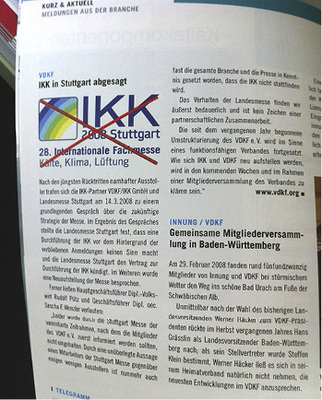 Am 14. März 2014 wird die IKK Messe – Wirtschafts- und Informationsdienste GmbH offiziell als Mitglied im Fachbereich Industrie & Handel“ ZVKKW aufgenommen. Die Aufnahme der IKK GmbH, eine 100-prozentige Tochter des VDKF, gibt damit ein wichtiges Signal für die erfolgreiche Annäherung von ZVKKW und VDKF.