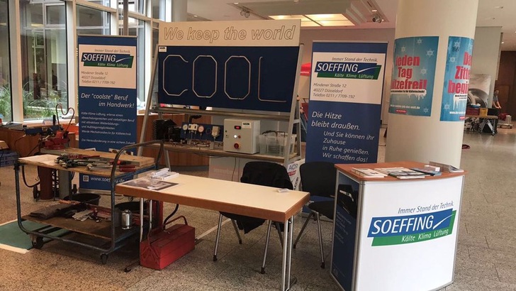 Durch seine Arbeiten im Ehrenamt, hat Soeffing zudem auch die Möglichkeit, zweimal im Jahr in der Handwerkskammer Düsseldorf als Aussteller tätig zu sein. Hier nimmt der Kältefachbetrieb teil am Tag des Handwerks und am Tag der Technik. An dem Stand haben sie dann Vorführanlagen aufgebaut um den Kältekreislauf und seine Funktionen anschaulich zu erklären. Außerdem können interessierte Schüler, Jugendliche und natürlich auch Erwachsene zusammen mit den Auszubildenden Löt- und Biegeübungen durchführen und sich alles erklären lassen.