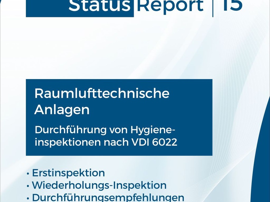 Der Status-Report enthält Informationen zu Erstinspektion, Wiederholungsinspektionen, Durchführungsempfehlungen und technischen Anforderungen. Die Hygiene-Erstinspektion ist verpflichtend an Anlagen durchzuführen, die fertiggestellt wurden und vor der Inbetriebnahme stehen, ebenso an Anlagen, welche im Bestand sind, aber an denen noch keine Erstinspektion durchgeführt wurde sowie nach wesentlichen Änderungen der Anlagen.