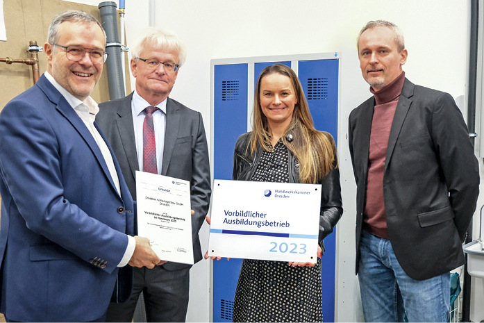 Die Handwerkskammer Dresden hat die Dresdner Kühlanlagenbau GmbH (DKA) am 25. März zum zweiten Mal als „Vorbildlicher Ausbildungsbetrieb 2023“ ausgezeichnet. Die erste Auszeichnung erfolgte 2011. Die Kammer würdigt damit die Ausbildung des auf Kälte- und Klimatechnik spezialisierten Unternehmens, das auf eine mehr als 70- jährige Unternehmensgeschichte zurückblickt. Ausschlaggebend für die Auszeichnung waren die hohe Ausbildungsqualität sowie das besondere Engagement rund um das Thema Ausbildung. Bei sehr guten Leistungen garantiert Geschäftsführer Andreas Thuß den Azubis eine Übernahme in den Betrieb. Neben der Ausbildung hob die Handwerkskammer auch die zusätzlichen Fördermaßnahmen bei DKA hervor. Angeboten werden unter anderem Sonderausbildungswochen sowie individuelle Nachhilfeförderung, um die Auszubildenden auf Prüfungen vorzubereiten. Derzeit bildet DKA bundesweit über 100 Nachwuchsmitarbeiter aus, darunter Mechatroniker für Kältetechnik, technische Systemplaner sowie kaufmännische Berufe. Die dualen Ausbildungen dauern in der Regel dreieinhalb Jahre. DKA gehört zur Dussmann Group mit Sitz in Berlin und ist seit 2019 eine Geschäftseinheit von Dussmann Technical Solutions.