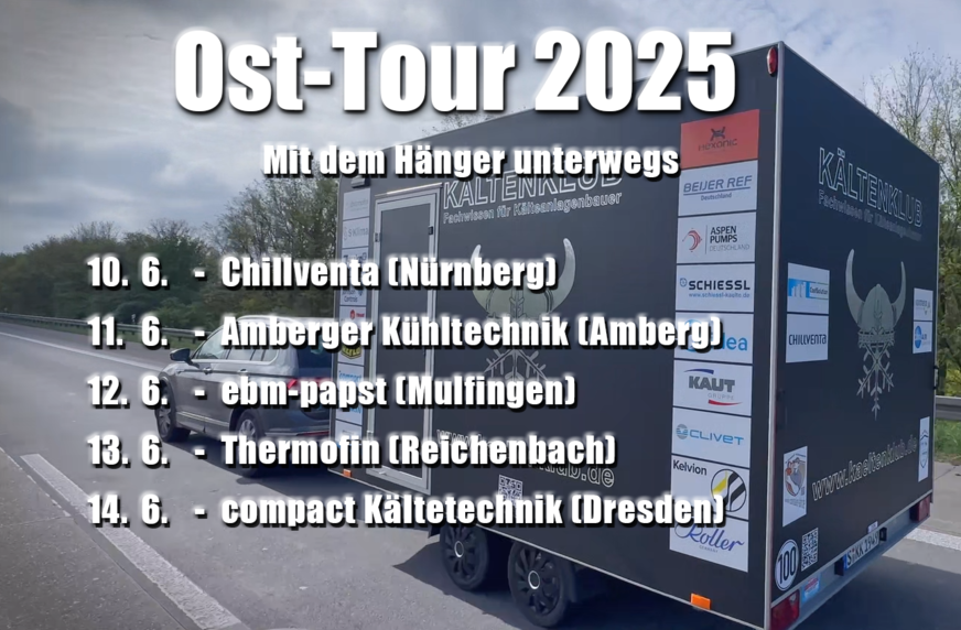 Los geht es zuerst mit der Chillventa – genauer gesagt mit dem Team von der NürnbergMesse. Denn da läuft hinter den Kulissen eine ganze Menge mehr, als das Auge vermuten lässt. Letztes Jahr hatten wir bei Amberger Kühltechnik einen ganzen Haufen Azubis auf dem Hänger. Wir schauen, wie es den Jungs und dem Mädel in der Zwischenzeit ergangen ist. Bei ebm-papst gab es in letzter Zeit einige Entwicklungen. Und genau darum sind wir im Hauptquartier in Mulfingen. Und danach geht es Richtung Sonnenaufgang. Zuerst zu Thermofin in Reichenbach und dann zu compact Kältetechnk in Dresden. Freut Euch also auf neue Videos unter www.youtube.com/c/KältenKlub
