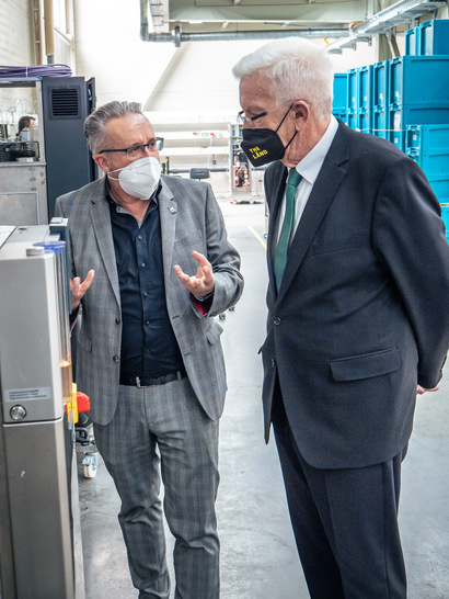 Strom wird mit der eigenen Photovoltaikanlage erzeugt, ergänzt durch Ökostrom aus Wasserkraft. Beleuchtet wird mit LED‐Technik, geheizt mit der Abwärme aus der Produktion und die Klimatisierung erfolgt über einen Tiefbrunnen. In Kombination mit der Betonkernaktivierung und einer kontrollierten Be‐ und Entlüftung wird der Energiebedarf auf ein Minimum reduziert. Im Anschluss an die Betriebsbesichtigung tauschten sich der Ministerpräsident und die Geschäftsführung über verschiedene Themen aus. Auf der Agenda standen Punkte, die für die Zukunft des Unternehmens relevant sind, wie Energieversorgung, natürliche Kältemittel, Fachkräftemangel und der steigende Verwaltungsaufwand aufgrund gesetzlicher Regulierungen. Im zurückliegenden Geschäftsjahr 2021 konnte das Unternehmen einen konsolidierten Umsatz von über 105 Millionen Euro verbuchen. Die Zahl der Beschäftigten ist ebenfalls gestiegen auf aktuell rund 400 Mitarbeiterinnen und Mitarbeiter. (OB)
