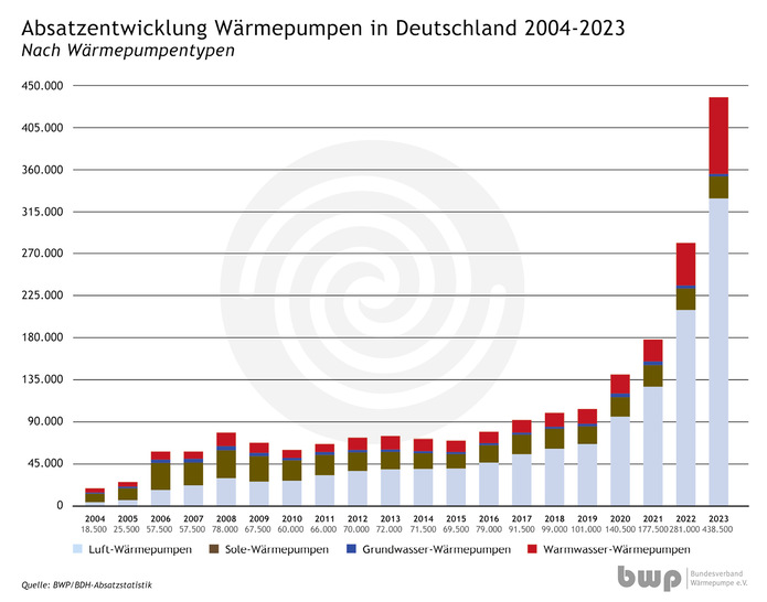 Mit 356.000 Geräten wurden laut BDH / BWP-Absatzstatistik so viele Heizungswärmepumpen wie noch nie in der bundesdeutschen Geschichte durch die Hersteller verkauft. Damit wächst der Absatz im zweiten Jahr in Folge um mehr als 50 Prozent. Der Branche ist dennoch kaum zum Feiern zumute: Denn trotz des Rekordjahres wird sich die gute Dynamik voraussichtlich nicht fortsetzen. Der Verband fordert Nachbesserungen von der Politik beim Strompreis, um den notwendigen Wärmpumpenhochlauf konsequent fortzuführen. Die hohen Gaspreise haben den Umstieg Auf Wärmepumpen schnell wirtschaftlich gemacht. Daher ist der Absatz noch im ersten Halbjahr 2023 sprunghaft nach oben geschnellt. Einen detaillierten Einblick dazu finden Sie auf Seite 16 ff.