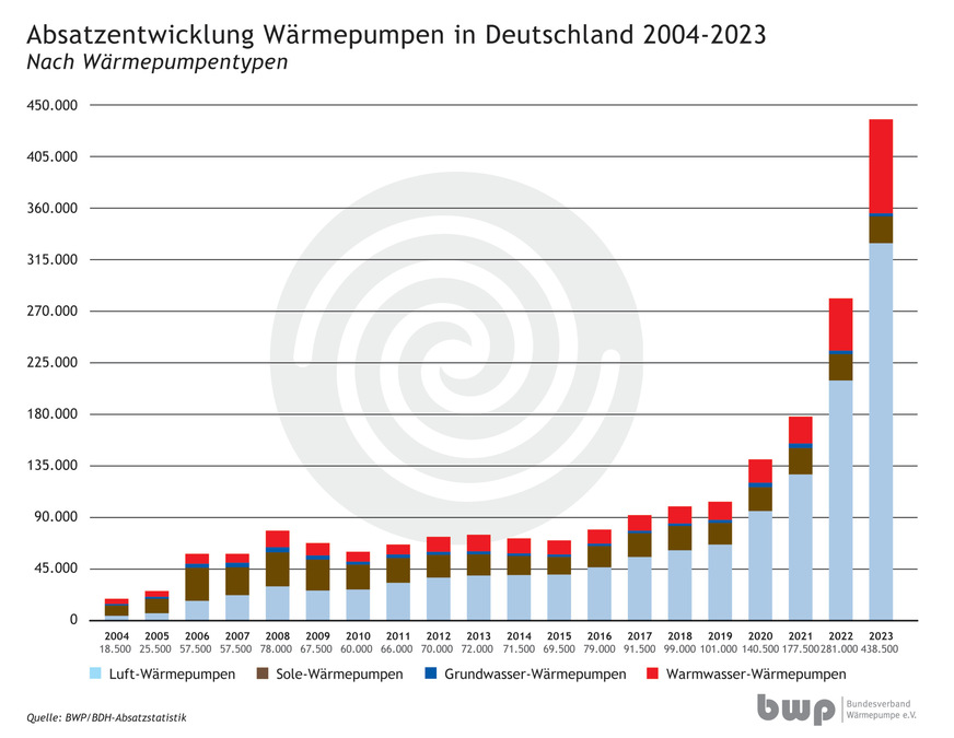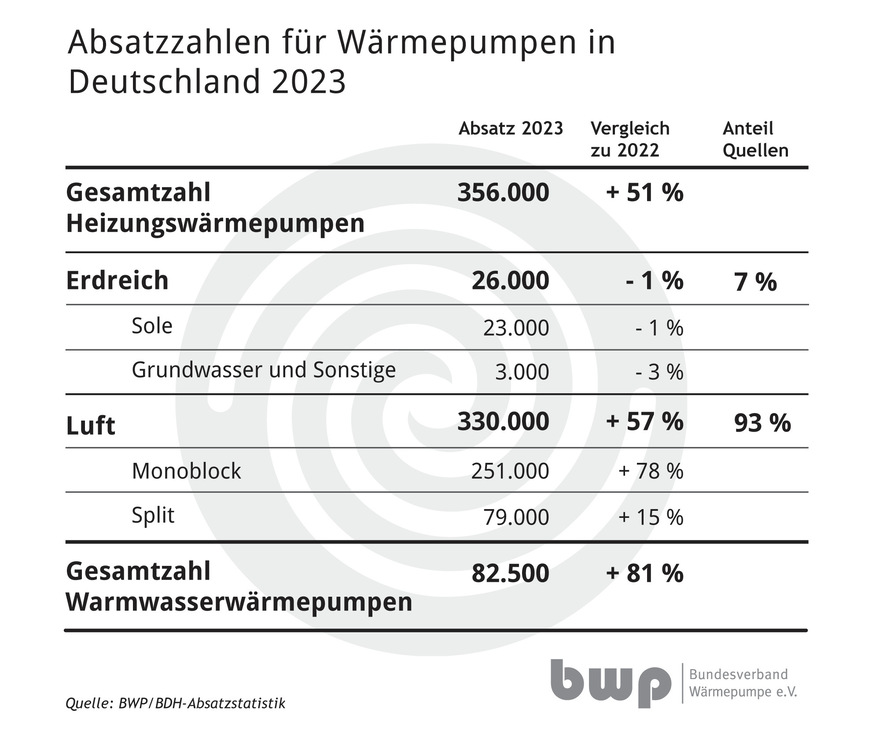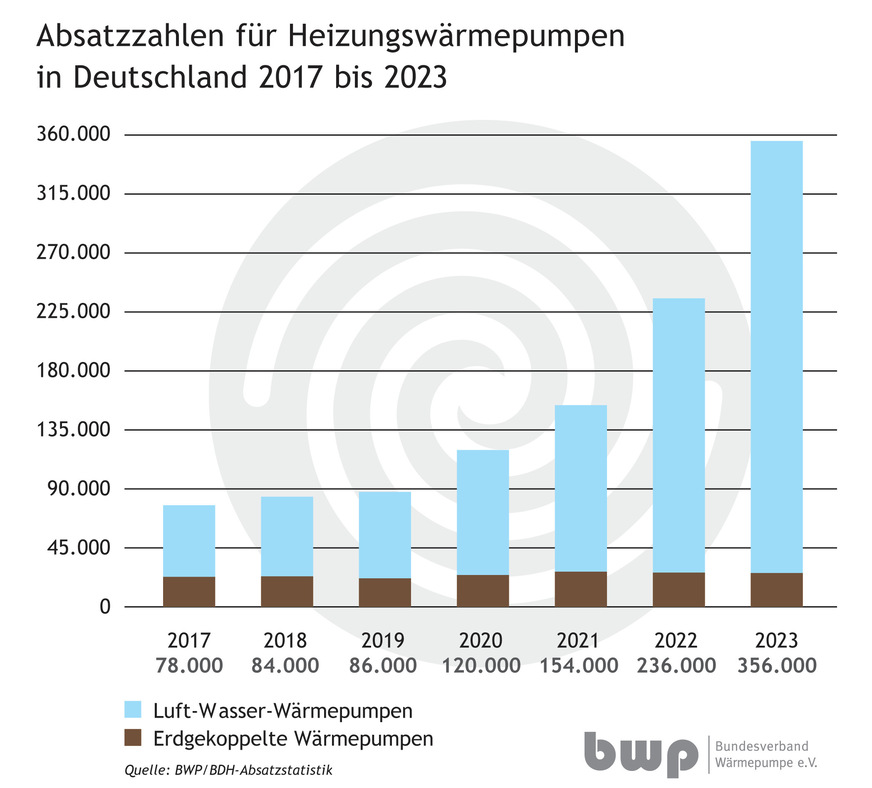 Mit 356.000 Geräten wurden laut BDH/BWP-Absatzstatistik so viele Heizungswärmepumpen wie noch nie in der bundesdeutschen Geschichte durch die Hersteller verkauft. Damit wächst der Absatz im zweiten Jahr in Folge um mehr als 50 Prozent. Der Branche ist dennoch kaum zum Feiern zumute: Denn trotz des Rekordjahres wird sich die gute Dynamik voraussichtlich nicht fortsetzen.