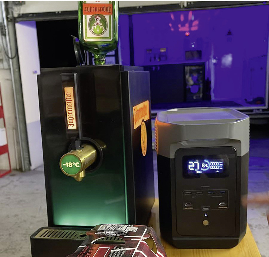Wir stellen fest, dass diese mobile Insellösung für uns Vorteile hat. denn wir können den Delta 2 einfach aus dem Schrank nehmen und unabhängig nicht nur im Hänger als Stromquelle nutzen. Für unsere Zwecke ist das ganz gut. Zum Beispiel, wenn Oli und ich mit dem Kühlschrank nachts alleine im Wald sind und ein kaltes Bier trinken wollen ;-). DR
