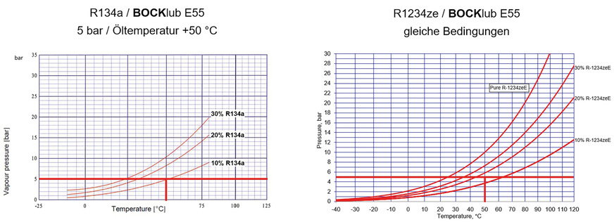 Im Vergleich zu gewohnten HFKWs wie R 404A und R 134a stellen HFO und ihre Gemische höhere Anforderungen an die Kompressoren, denn diese Kältemittel haben eine deutlich höhere Löslichkeit im Öl. Das führt zu einer Reduktion der Ölviskosität und verringert die Schmiereigenschaften des Öls. Als Folge entsteht ein erhöhter Verdichterverschleiß. Deshalb hat Bock seine Erfahrung mit technisch anspruchsvollen Kältemitteln wie CO2 und Kohlenwasserstoffen genutzt und die Verdichter überarbeitet, damit sie auch für HFO-Kältemittel geeignet sind.