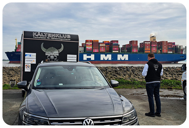 Nach den Videos darf ich den Gästen das Projekt PINK vorstellen und Jörg hat den Anhänger genutzt, um von dort aus seine Gäste und Mitarbeiter zu begrüßen (Bild 14). Auch eine Mitarbeiterehrung ist dabei. Bevor es etwas zu Essen gibt, locke ich alle Gäste zum Gruppenfoto (Bild 15). Und dann ist der offizielle Teil vorbei und der Grillabend startet. Das Team von Robert Meyer Catering verwöhnt uns mit erstklassigen BBQ. Wir unterhalten uns mit nahezu allen Leuten, lernen uns kennen, tauschen uns aus. Es ist ein Partyabend mit lauter Musik, Bier, Grill und allem, was dazu gehört. Eine kältische Fete, die im übertragenden Sinne mit Blaulicht endet (Bild 16). Ja gut, das ist noch nicht ganz das Ende. Kurz vor Mitternacht dürfen Wolle und ich noch die Massagesessel im ersten Obergeschoss von Coolair versuchen (Bild 17). „Eigentlich hätte mir das als Bett heute Abend gereicht“, murmelt Wolle vor sich hin. Und mir eigentlich auch. Diese Tour war anstrengend und fantastisch zugleich. Wir haben viele Videos gemacht, viele neue Leute kennen gelernt und viele neue Dinge erlebt. An dieser Stelle ein großes Dankeschön an die PINK-Partner, die wir im Rahmen der NordTour 2024 besuchen durften. Morgen bauen wir ab, räumen auf und fahren heim. Bis zur nächsten Tour, der WestTour. Aus Zeitgründen können wir wie bei allen Videos nicht ins Detail gehen. Dafür erscheinen in den kommenden Heftausgaben der KK diese Beiträge als Heftbeiträge mit ausführlichen Details zu den Inhalten. DR