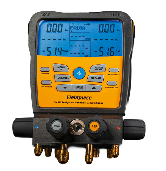 Die digitale Monteurhilfe Sman SM482VINT von Fieldpiece ist für den Einsatz an Kälte- und Klimaanlagen konzipiert und für Kältemittel der Sicherheitsklassen A2L, A2 und A3 zertifiziert. Dekra bestätigt die Konformität mit der Norm IEC 60335-2-104:2021. Das Gerät lässt sich mit den Werkzeugen des Job Link Systems verbinden, wobei die kabellose Reichweite über die 2,4-GHz-Frequenz bis zu 300 m beträgt. Es verfügt über eine integrierte Datenaufzeichnung, deren Protokolle über einen USB-C-Anschluss extrahiert werden können, der auch für Firmware-Updates dient. Zur Funktionsausstattung gehören eine temperaturkompensierte Systemdichtheitsprüfung sowie ein integriertes Vakuummeter für die Unterdruckmessung. Das Gerät mit einem Gewicht von 1,8 kg besitzt ein 12,7 cm großes, beleuchtetes LC-Display und ist nach Schutzart IP55 gegen Witterungseinflüsse geschützt. Der maximale Anlagendruck beträgt 5998 kPa, der Betriebstemperaturbereich liegt zwischen – 10 °C und 50 °C. Die Stromversorgung erfolgt über sechs AA-Batterien, die eine Betriebsdauer von bis zu 405 Stunden ermöglichen. Zum Lieferumfang gehören eine Tasche, zwei Typ-K-Rohrklemmen-Thermoelemente sowie ein Typ-K-Perlen-Thermoelement. Die Gerätesoftware unterstützt 12 Sprachen.