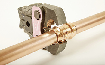 Speziell für kältemittelführende Rohrleitungen aus Kupfer hat Conex | Bänninger, der Spezialist für Ventile und Rohrverbindungstechnik, >B< MaxiPro entwickelt – den innovativen Pressfitting für die Kältetechnik. Zur Herstellung einer permanent dichten Verbindung werden die Fittings über drei Punkte verpresst – vor, auf und hinter der O-Ring-Sicke. Zusätzlich vereinfacht die zylindrische Rohrführung die Handhabung und verhindert gleichzeitig die Beschädigung des O-Rings. Der Vorteil gegenüber dem traditionellen Löten liegt in der Zeitersparnis und dem Flexibilitätsgewinn durch die flammlose Verbindung. Nicht nur die Arbeitssicherheit auf der Baustelle, son- dern die gesamte Produktivität werden mithilfe von >B< MaxiPro signifikant gesteigert.