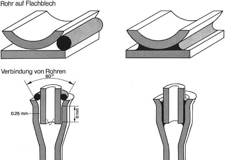 Einstecktiefen zwischen 10 und 20 mm haben sich in Abhängigkeit von dem Rohrdurchmesser sowie der Wanddicke bei den Mischverbindungen bewährt. Die löttechnische Faustformel Überlappungslänge = 3…6 x Bauteildicke“ kann bei Fügeverbindungen Al/Al angewendet werden.