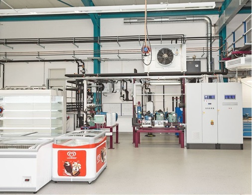 Im Schulungszentrum wird nicht nur das gesamte Spektrum der Gebäudeleittechnik sowie moderner Bus-Systeme von Kühlmöbeln geschult. Es steht auch eine der modernsten 134a-Verbundanlagen (für die Pluskühlung) mit transkritischer CO 2 Tiefkühlkaskade zu Schulungszwecken zur Verfügung. Zu den Schulungsinhalten zählen weiterhin alle gängigen Regelsysteme, das Wärmemanagement und die Simulation der häufigsten Fehlerbilder aus der Praxis. Ebenso wird an Übungsschaltfeldern und -schaltschränken trainiert. Das Zentrum ist jederzeit erweiterbar und damit auch für zukünftige technische Schulungen gewappnet.