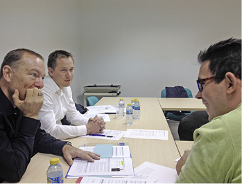 Nach einer knappen Stunde beginnen nun die Vorstellungsgespräche. Den beiden deutschen Unternehmen liegen aussagekräftige Profile der jeweiligen Kandidaten vor. Zusätzlich stehen Behringer und Schennach als Dolmetscher zur Verfügung. Die Vorstellung der Spanier und einige Standardfragen laufen auf Deutsch ab. Sobald es tiefer, vor allem Richtung Technik geht, wird meist übersetzt. Was auffällt ist, dass obwohl die Spanier im Deutschen fast auf dem gleichen Stand sind, es erhebliche Unterschiede gibt. So plaudert der erste Kandidat von Genheimer unentwegt und hat sich auch schon bereits über Hettstadt und Umgebung informiert. Der erste Kandidat der Dresdner hingegen bekommt vor Nervosität kaum ein deutsches Wort über die Lippen. Für die Spanier geht es in diesem Moment scheinbar einfach um viel“, sagt Steffen Opitz. Bei den weiteren Kandidaten läuft es dann auch besser. Dennoch benötigen die Kandidatenauch in Deutschland in der Regel noch etwa sechs Monate Zeit, bis die Verständigung auf Deutsch fließend klappt. Sie sollen im ersten Jahr auch zunächst nur als zweiter Mann eingeplant werden, ab dem zweiten Jahr sollen sie dann auch allein arbeiten können. Bei den jungen Monteuren könnte dies auch noch etwas länger dauern. Bei erfahrenen Kräften haben viele Kunden auch schon berichtet, dass diese bereits im ersten Jahr sehr eigenständig arbeiten konnten, fasst Behringer die Erfahrungen zusammen.