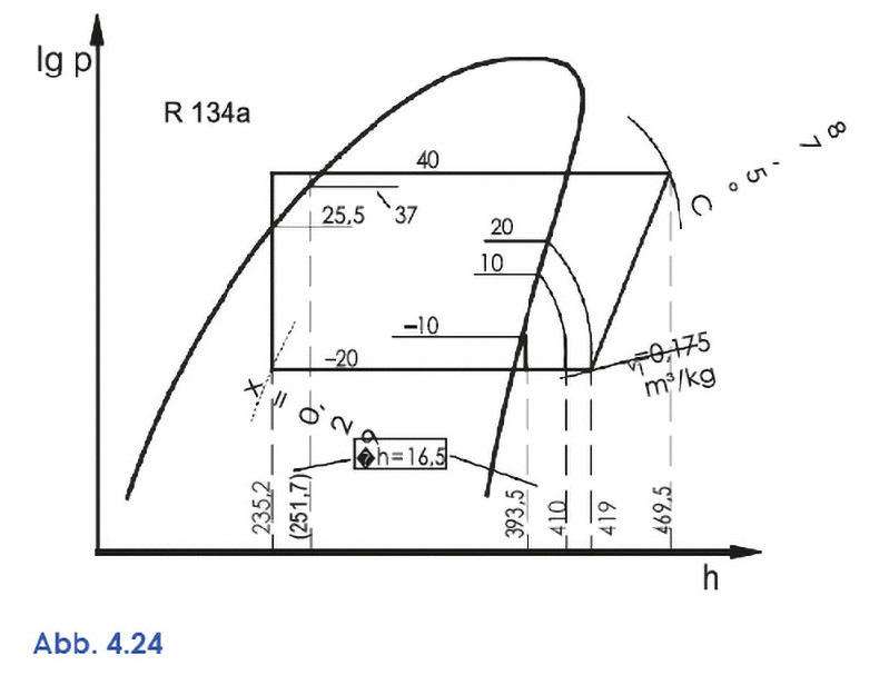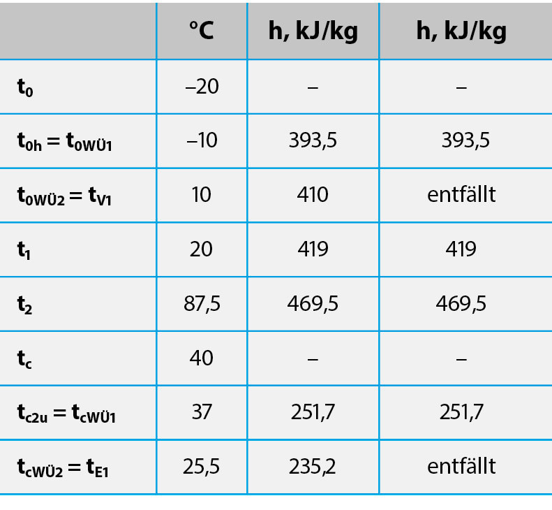 Damit ergibt sich, da ΔhÜ = ΔhU: h3 = h3WÜ1 – ΔhÜ = (251,7 – 16,5) kJ/kg = 235,2 kJ/kg