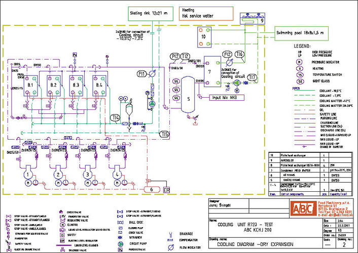 Diese Kältemaschine ist, nach Kenntnisstand des Autors, eine der derzeit größten mit Trocken-Expansion arbeitenden R723-Anlagen mit Kolbenverdichtern. Sie wurde von der Firma ABC Foodmachinery s.r.o. mit Sitz in Bratislava nach dem auf Seite 34 dargestellten Schema konzipiert und gebaut.