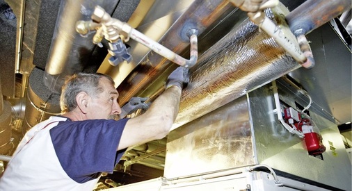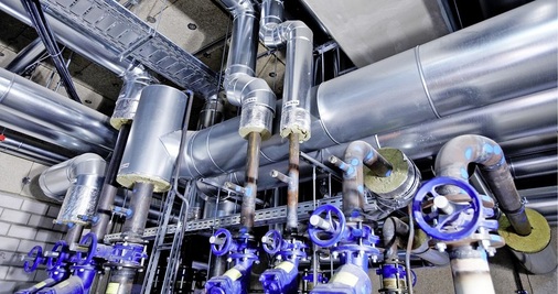 Zur Isolation der diversen Medien griff das Team um Eyup Karaduman auf bewährte Steinwolle-Dämmsysteme zurück. So wurden etwa sämtliche Heizungsleitungen (Stahl schwarz St 37) mit der Rohrschale ,Rockwool 800 gedämmt. Die nichtbrennbare Steinwolle-Schale ist mit einer gitternetzverstärkten, reißfesten Aluminium-Sandwich-Folie mit selbstklebender Überlappung kaschiert. Die Rohrschalen sind einseitig aufgeschlitzt und zur leichteren Montage auf der Innenwandung eingesägt.