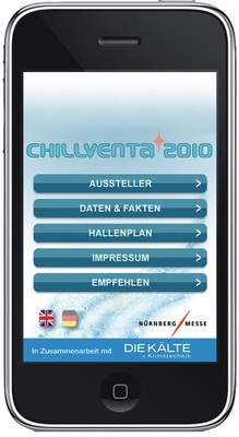 Die iPhone-Fangemeinde wird immer größer, täglich werden neue Apps (Anwendungen) programmiert. Viele sind reine Spielereien, doch es gibt auch nützliche Features, die das Leben leichter machen. Dazu zählt zweifelsfrei die gemeinsam von der NürnbergMesse und der KK herausgegebene neue Chillventa-App. Dort gibt es alles Wissenswerte rund um die internationale Fachmesse für Kälte, Raumluft, Wärmepumpen. Dabei handelt es sich um die erste Chillventa-App überhaupt.