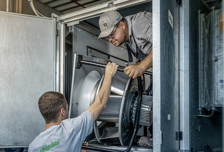 Der Einsatz der neuesten Ventilatorengeneration bringt noch weitere Vorteile: Die Einbindung in die Gebäudeleittechnik, die Installation von Sensoren und somit ein bedarfsgerechter Betrieb oder gar datengetriebene Mehrwerte wie Predictive Maintenance. Im Fall des Mulfinger Retrofits wurden bei vielen Anlagen Gateways von ebm-papst neo verbaut. Diese können die Daten aus dem Ventilator herauslesen, wie zum Beispiel die Laufzeiten überwachen oder auch den Stromverbrauch messen. Die Gateways können über LTE direkt in die ebm-papst neo-Cloud kommunizieren und so weiteres Einsparpotential erkennen und nutzen.