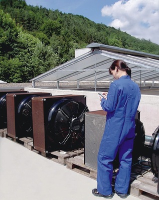 Der Umgang mit der Technik ist einfach: Um drahtlos mit den Ventilatoren zu kommunizieren, muss lediglich der Bluetooth-Adapter in Sichtweite des Bedieners (Bild 2) installiert werden, damit man über die Schnittstelle des PDAs oder Smartphone die entsprechenden Daten übertragen kann. Der Adapter setzt das Bluetooth-Signal ins RS485-Bussignal um und umgekehrt. Versorgt wird er über die angeschlossenen Ventilatoren, braucht also keine eigene Stromversorgung. Die drahtlose Datenübertragung nutzt das lizenzfreie 2,4MHz-ISM-Frequenzband; überbrückt werden Distanzen bis etwa 20m.
