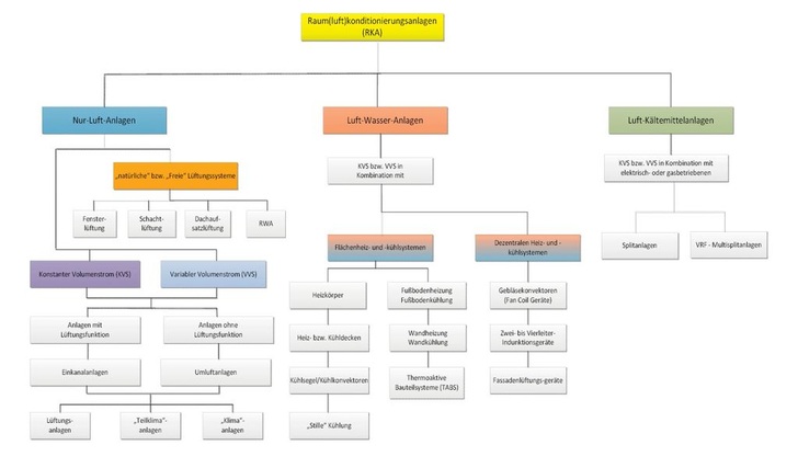Die generelle Übersicht über die möglichen Systeme erscheint sinnvoll und zweckmäßig, um die Vielfalt der Möglichkeiten zur Konditionierung eines Raum(luft)-zustandes charakterisieren zu können.