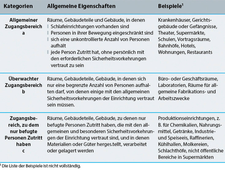 Anmerkung: Zugangsbereiche können entsprechend den nationalen Anforderungen kategorisiert sein.