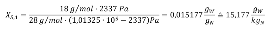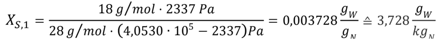 XS beschreibt, wie viel Wasserdampf maximal im Stickstoff-Wasserdampf-Gemisch enthalten sein kann.