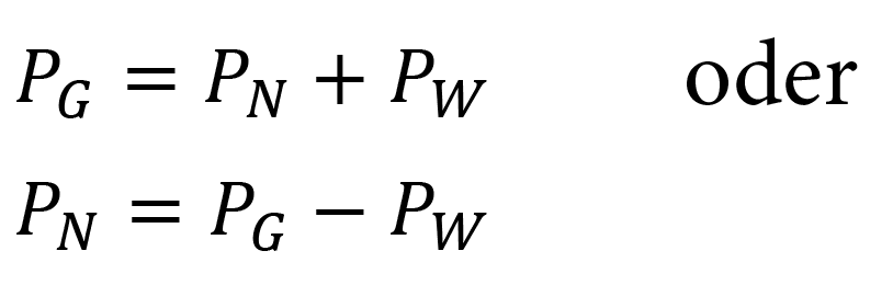 Nun setzt sich der gesamte Druck PG aus der Summe der beiden Partialdampfdrücke zusammen (d. h. aus PW und PN). Es gilt: