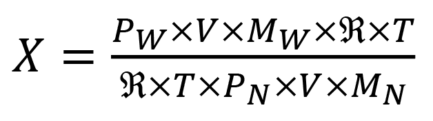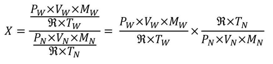 Demnach kann man diese Größen herauskürzen – die allgemeine Gaskonstante ist sowieso konstant. Man erhält:
