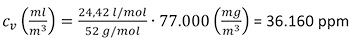 Die Umrechnung kann nach der vereinfachten Formel gemäß TRGS 900 erfolgen: wobei die Einheit (ml/m³) den ppm (Vol) entspricht: