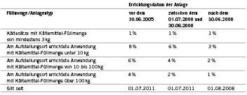 Frage Zum 1. Juli 2011 sind die Übergangsfristen für die Einhaltung von spezifischen Kältemittelverlusten für Anlagen, die vor dem 1. Juli 2008 errichtet wurden, abgelaufen.