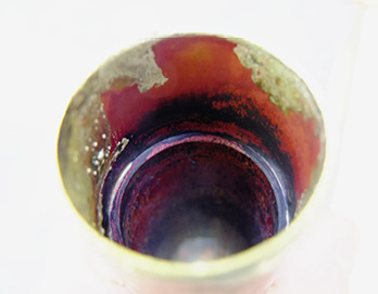 Nachfolgendes Prüfbild einer Hartlotverbindung verdeutlicht das Problem einer zu geringen Lotmenge. Die notwendige Überlappungslänge wurde nicht erreicht. Somit kann die Lötverbindung durch Wärmedehnung bzw. Kältekontraktion oder Schwingungen undicht werden.