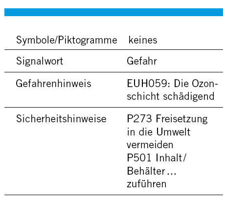 Außerdem sind die gemäß Verordnung (EG) Nr. 1272/2008 festgelegten Kennzeichnungselemente für als die Ozonschicht schädigend eingestufte Stoffe und Gemische anzugeben, die wie folgt aussehen: