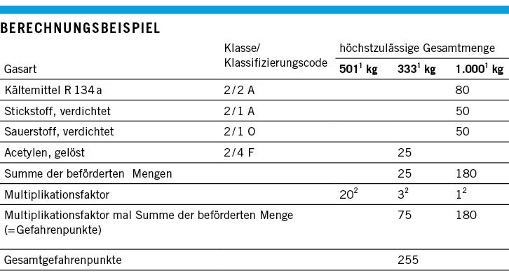 Die höchst zulässige Gesamtmenge je Beförderungseinheit von 1 000 Punkten darf nicht überschritten werden, da nur dann die vereinfachten Transportbedingungen angewendet werden können.