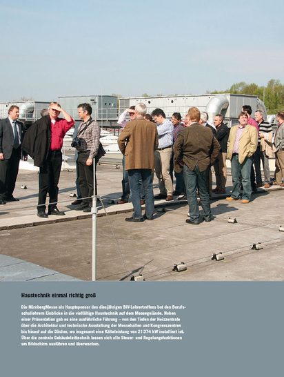 Bei der nachfolgenden Besichtigung des Messegeländes führte der Weg durch die Leitzentrale, das zentrale Kesselhaus, über Dächer und durch das Congresszentrum Ost mit seiner interessanten Innenarchitektur sowie die Lüftungszentrale, die jeden Veranstaltungsraum individuell und bedarfsgerecht klimatisiert.