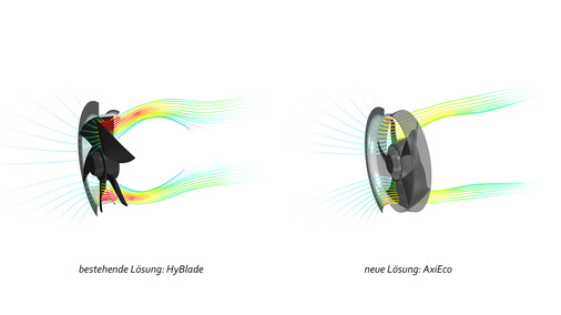 - Höhere Effizienz und verbessertes Geräuschverhalten durch kompakte Einheit von Laufrad, Schleuderring und Nabe