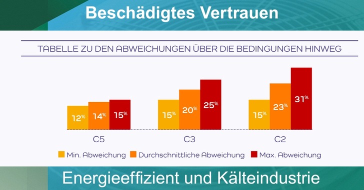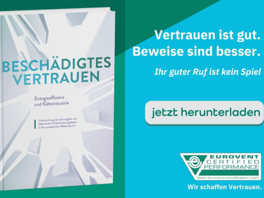 Ein neues Whitepaper befasst sich mit Produkt-Minderleistungen im europäischen Kältesektor. Hierbei stützt es sich auf aktuelle Untersuchungen von Eurovent Certification. Sie zeigen eine mögliche Diskrepanz bis zu 31 Prozent zwischen der angegebenen und der erwarteten Leistung. „Beschädigtes Vertrauen - Energieeffizienz und Kälteindustrie“ geht auf die Bedeutung zuverlässiger Produktinformationen und die Auswirkungen von Ungenauigkeiten auf alle Akteure ein.