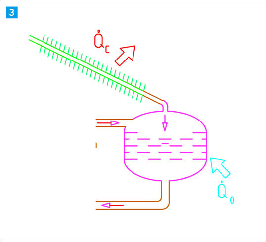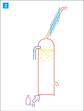 Um Ammoniak mit ausreichender Reinheit in den Verflüssiger zu schicken, kondensiert das Wasser im Dampfkühler, von wo aus es wieder in den Kocher zurückläuft. (Bild 2)