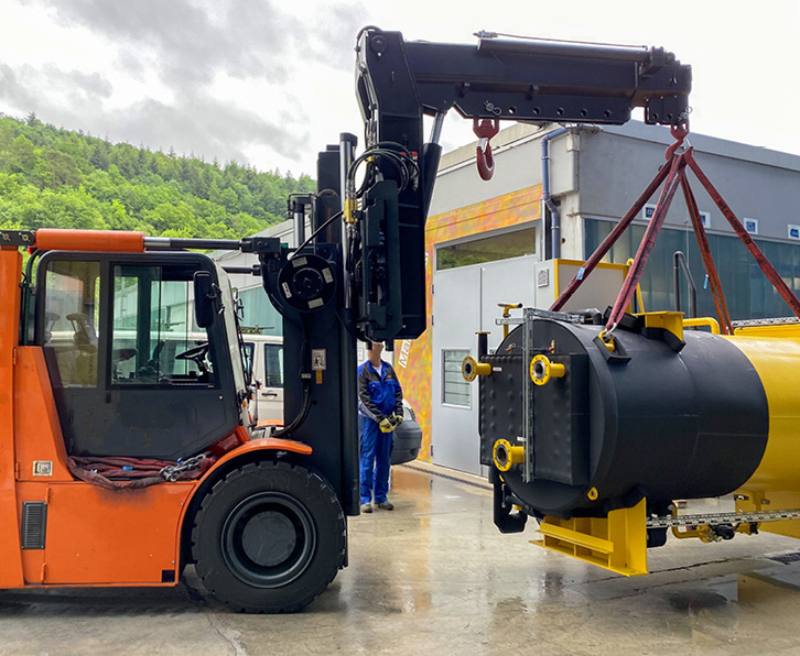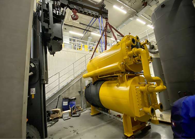 Aufgrund des hohen Kühlbedarfs im Werk wird eine leistungsstarke Anlage wie z. B. die Hornisse benötigt. Die Abmessungen der Hornisse sind L / B / H: 3,75 x 1,83 x 3,23 m. Da die Einbringungswege wie Tore und Gänge jedoch häufig eng und nicht sehr hoch sind, kann die Anlage auch in geteilter Ausführung angeliefert werden. So ist der Transport wesentlich einfacher. Nach Einbringung in das Gebäude wird die Maschine am Aufstellungsort zusammengebaut.