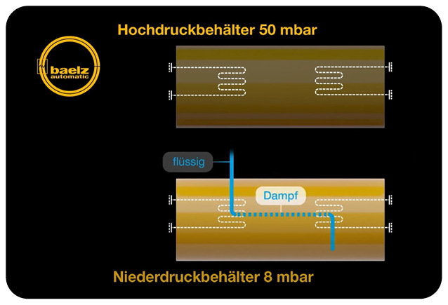 Die Wartung der Anlage ist nur einmal im Jahr notwendig. Zusätzlich zu Funktionsprüfung, Reinigung und Optimierung der Regelung wird dabei eine Nachevakuierung der Vakuumbehälter vorgenommen. Die Absorptionskälteanlagen von Baelz sind ohne integrierte Vakuumpumpen zur Konstanthaltung des Hochvakuums konstruiert. Dadurch entfällt eine häufig lästige und teure Störungsquelle.
