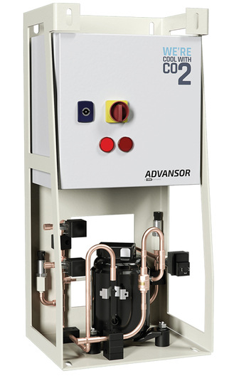 Die Notkühlung von Advansor basiert ausschließlich auf CO2 , was bedeutet, dass die gesamte Kältetechnik einschließlich Verbundanlage auf natürlichen Kältemitteln basieren kann. Dies stellt eine reine CO2- Lösung dar, die nicht toxisch, nicht brennbar und nicht umweltschädlich ist. Wenn die Verbundanlage aufgrund eines Notfalls oder im Service stoppt, verhindert die Stillstandkühlung, dass der Verbund Kältemittel verliert, indem es den Druck im System aufrechterhält. Die Anlage wird direkt am Kältemittelsammler montiert. Alles ist in den Gestellrahmen integriert und werksseitig getestet. Das bedeutet auch, dass die Kühlung in ein Gehäuse für die Installation im Freien passt.