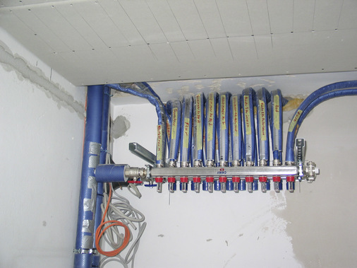 Knapp 1195 m des Profils wurden verlegt, der Rohrdurchmesser des Mehrschicht-Verbundrohrs beträgt 16 x 2 mm. In beiden Etagen sorgen Klimaverteiler für die exakte Steuerung. Ausgelegt ist das System mit 22 Kreisen im Heizbetrieb mit einem Vorlauf von 35 °C und Rücklauf 30 °C. Im Kühlmodus beträgt der Vorlauf 16 °C, der Rücklauf 19 °C.