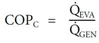 Die Leistungszahl für den Absorptionskälteprozess wurde anhand des Verhältnisses der thermischen Leistungen von Verdampfer (Q. EVA ) und Generator (Q. GEN ) gemäß dieser Gleichung berechnet: