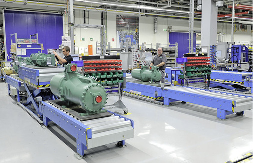 Garant für die Effizienz des Werkes ist das Bitzer-Produktionssystem BIPROS. Wichtige Pfeiler dieses Systems sind Teamarbeit, Just-in-time-Abläufe, Standardisierung, kontinuierliche Verbesserung sowie stabile Prozesse. Christian Wehrle: Im Rahmen von BIPROS setzen wir auf ein hochqualifiziertes Team, das jeden Tag aufs Neue dafür sorgt, dass die gesamte Wertschöpfungskette wie ein Uhrwerk präzise funktioniert. Mit durchaus positivem Effekt, wie Frank Brunner, Fertigungsleiter im internationalen Kompetenzzentrum für Schraubenverdichter von Bitzer, ergänzt: Wenn wir kontinuierlich unsere Prozesse und die Qualität unserer Produkte optimieren, dann haben wir bei höherer Flexibilität ganz automatisch auch die gesamten Kosten im Griff.