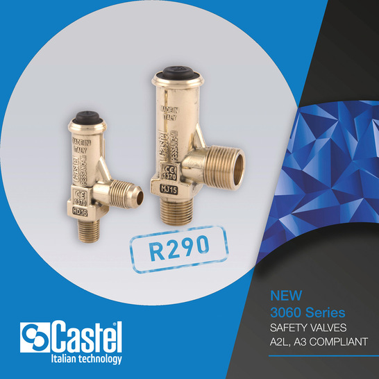 Castel ergänzt die Produktreihe Polyhedra mit der Serie 3060 um Sicherheitsventile, die für Kältemittel der Klassen A1, A2L und A3 sowie für Fluide der Gruppe 1 konzipiert sind. Die Ventile erfüllen die Anforderungen der europäischen Druckgeräterichtlinie (PED) und sind für den Einsatz mit brennbaren Fluiden wie Propan (R290) zertifiziert. Sie eignen sich zum Schutz von Kälteanlagen kleiner bis mittlerer Kapazität. Die Serie 3060 ist werkseitig auf einen Druckbereich von 9 bis 50 bar einstellbar und nach internationalen Sicherheitsventilstandards zertifiziert. Sie erweitert die bestehenden Baureihen 3061 und 3065 und ist für Standardinstallationen sowie für komplexere Systeme vorgesehen.