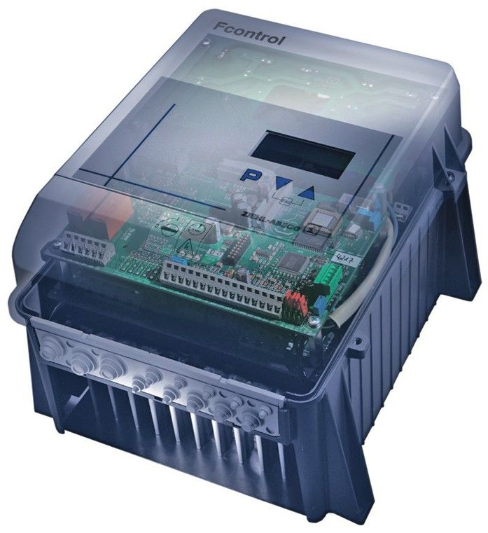 Wegen hoher Einsparpotenziale kommen immer häufiger Frequenzumrichter zum Einsatz. Zu beachten ist, dass diese mit allpoligen Sinusfiltern ausgestattet sein müssen, um eine Gefährdung der Motoren durch Spannungsspitzen und Lagerströme auszuschließen. Aktuelle Frequenzumrichter, beispielsweise die Umrichter Fcontrol (Bild 1), arbeiten mit Taktfrequenzen von 16kHz und gewährleisten daher einen geräuschlosen und effizienten Motorenbetrieb. Durch den allpolig wirksamen Sinusfilter kann auf geschirmte Motorleitungen verzichtet werden.