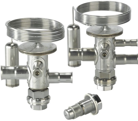 Der erste Schritt, um das richtige thermostatische Expansionsventil auszuwählen und zu dimensionieren, ist die Auswahl des Kältemittels. Expansionsventile gibt es in einer sehr großen Vielfalt. Dies ist nicht zuletzt darauf zurückzuführen, dass praktisch für jedes Kältemittel ein anderes Expansionsventil eingesetzt wird. Der Grund dafür ist die Fühlerfüllung des Expansionsventils, die auf die Temperaturen und Drücke des spezifischen Kältemittels abgestimmt sein muss. Ausnahmen hierzu sind R 507 und R 404 A. Bei diesen beiden Kältemitteln ähneln sich die Druck-Temperatureigenschaften so sehr, dass die gleiche Ventilserie verwendet werden kann.