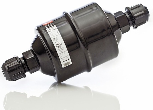 Filtertrockner gibt es in den verschiedensten Ausführungen. Der Standardtrockner (z. B. DML) ist im gewerblichen Anlagenbau am häufigsten anzutreffen. Er hat einen Feststoffkern und bildet mit dem kompakten Gehäuse eine untrennbare Einheit. Diese Standardtrockner sind nur für eine Durchströmungsrichtung (Pfeilrichtung auf dem Trocknergehäuse beachten) konzipiert. Das ist meist auch völlig ausreichend. Sollte man allerdings doch einmal einen echten Biflow-Betrieb haben wie er etwa in einer Wärmepumpe mit einem 4-Wege-Umkehrventil vorkommt so kann man entweder zwei Standardtrockner parallel mit entgegengesetzter Flussrichtung anordnen und zu ihnen jeweils noch ein Rückschlagventil in der entsprechenden Strömungsrichtung montieren oder gleich einen Biflow-Trockner (Danfoss DMB) auswählen. Biflow-Trockner sind wahlweise in beiden Richtungen durchströmbar, ohne die Gefahr, dass erst kürzlich ausgefilterte Fremdstoffe postwendend wieder an die Anlage abgegeben werden.