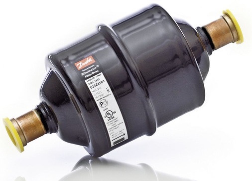 Wird eigentlich ein Standardtrockner benötigt, aber die Rohrleitungs-Anschlussgrößen befinden sich schon im Bereich von 22 mm und größer, so bietet sich der Einsatz eines Gehäusefiltertrockners für austauschbare Trockenblöcke an (Danfoss DCR). Diese Gehäusefiltertrockner sind für den Betrieb mit einem oder mehreren Feststoffeinsätzen erhältlich. Hauptvorteil dieser Variante ist der sehr leichte Austausch der Trockeneinsätze ohne Lötarbeiten oder Demontage der Rohrleitungen und der moderate Servicepreis, da das Gehäuse in der Anlage bleibt und nicht erneut gekauft werden muss. Hauptanwendungsgebiet dieser Gehäusetrockner ist ebenfalls die Flüssigkeitsleitung.