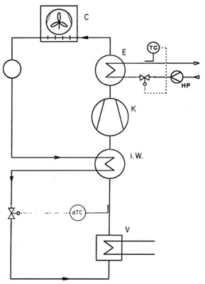 Natürlich kann zusätzlich zur Enthitzung für Heizzwecke auch eine Warmwasserbereitung durch Nutzung der Kondensationswärme folgen. Der im Bild 9 dargestellte Luftkühler wird dann durch die bekannten Warmwasserbereiter ersetzt oder ergänzt.