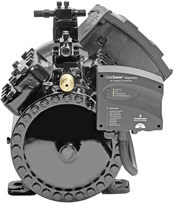 Wie auch bei den Stream-Verdichtermodellen für HFKW-Kältemittel, werden die semihermetischen Stream-Verdichtermodelle für CO 2 -Anwendungen gleichfalls mit der elektronischen Verdichterüberwachung CoreSense Diagnostics ausgestattet, siehe Bild 5 . Bei der CoreSense-Technologie handelt es sich um eine weiterentwickelte Verdichterüberwachung mit Diagnose-, Aufzeichnungs- und Kommunikationsfunktionen. Durch die verbesserte Verdichterüberwachung lassen sich Betriebssicherheit und Lebensdauer steigern. Zusätzlich kann durch die CoreSense-Technologie die Leistungsaufnahme des Verdichters über die Laufzeit und eine Fehlerhistorie aufgezeichnet werden, was die Service- und Wartungsarbeiten vereinfacht und verkürzt. Diese Informationen können auch über ein Fernüberwachungssystem abgerufen werden.
