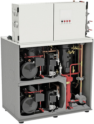 Bild 6 zeigt ein kompaktes Boostersystem mit zwei Scrollverdichtern in der Tiefkühlstufe, wobei einer der beiden Verdichter als digitaler Scrollverdichter mit stufenloser Leistungsregelung aufgebaut wurde. Die Hochdruckstufe des Boostersystems wurde mit semihermetischen Stream-Verdichtern 4MTL ausgeführt. Supermärkte in Nordeuropa sind bereits mit einer solchen CO 2 -Anlagentechnologie ausgerüstet.